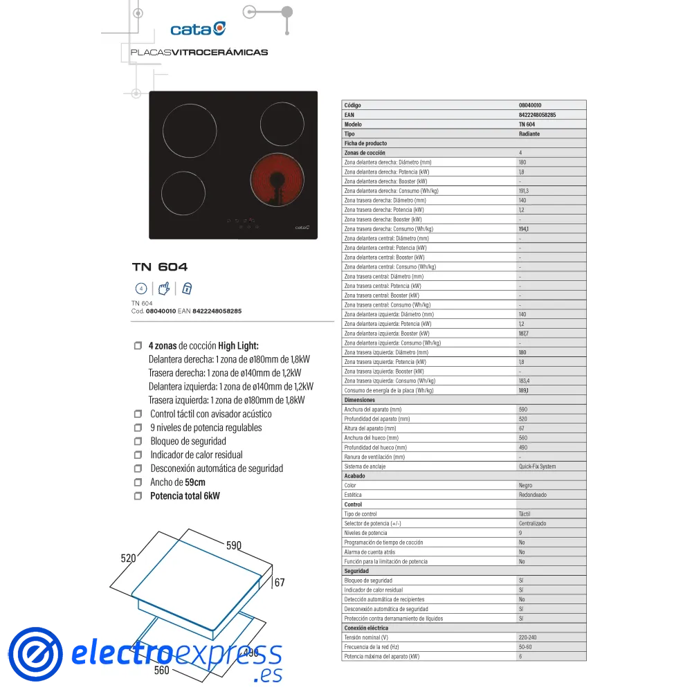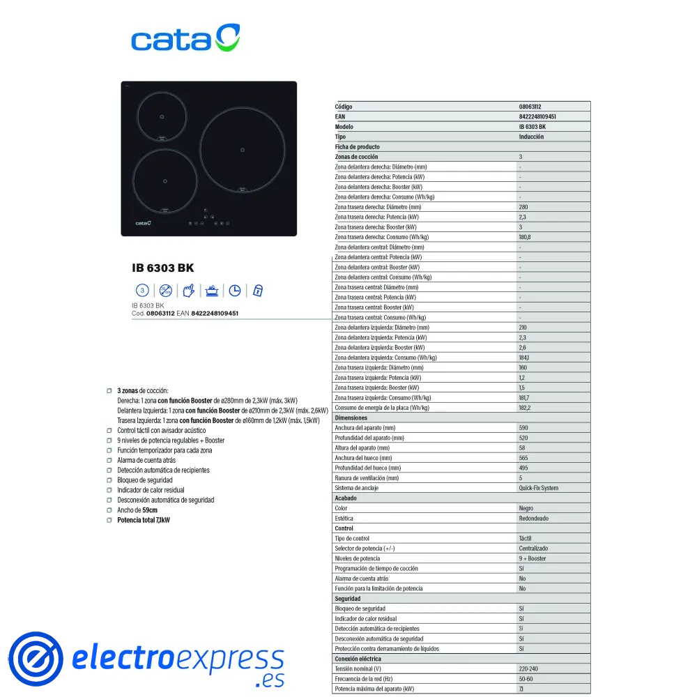 vitroceramica digital CATA - insb6003wh - blanca 3 induccion funcion booster