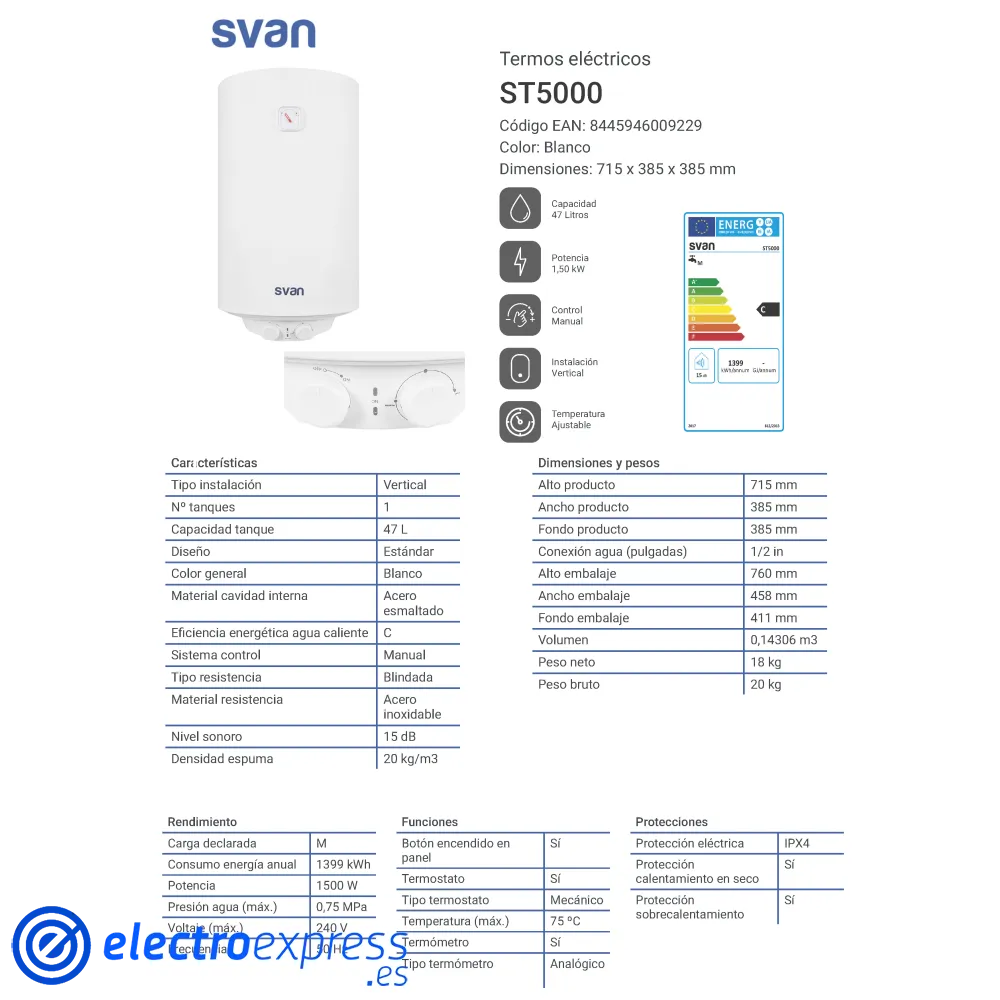 termo electrico SVAN - st1000 - 100 litros 89,5×45 redondo 1500 watios