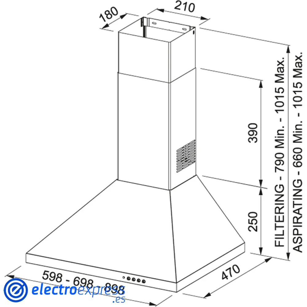 Con una potencia máxima de 200 W y una iluminación LED, podrás cocinar sin preocuparte por el humo y disfrutar de una mejor visibilidad en todo momento. Además, cuenta con 3 velocidades y mandos touch para un control fácil y preciso. Sus filtros de aluminio son lavables y garantizan una limpieza óptima para un rendimiento duradero. Con un mínimo de 410m3/h y un máximo de 590m3/h, esta campana se adapta a tus necesidades y te ofrece un aire más limpio y fresco en tu cocina.