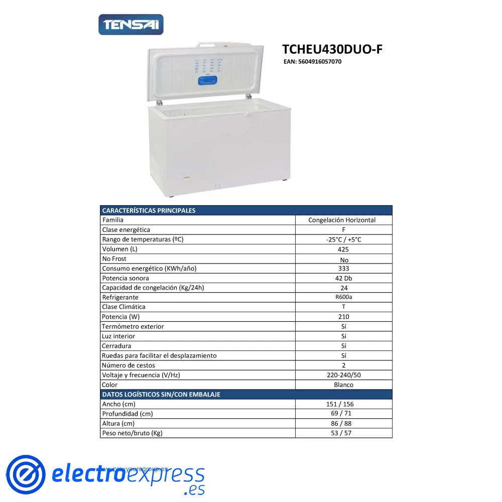 Congelador horizontal ciclico dual cooling clasificacion energetia f blanco display...