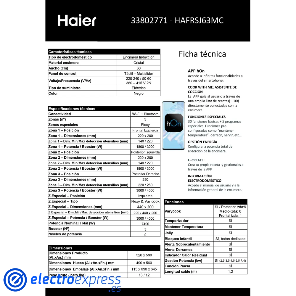 Aquí puedes comprar Vitroceramica de la marca HAIER con estas especificaciones: